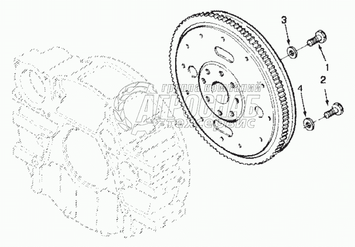 Каталог запасных частей к технике: Cummins L340-20. Установка маховика