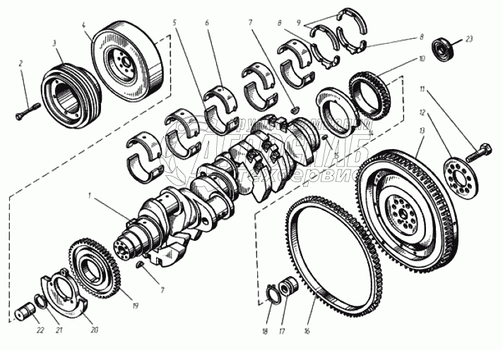 | 1 | 8423.1005010 | Вал коленчатый в сборе с шестернями | Под заказ | - | |||||