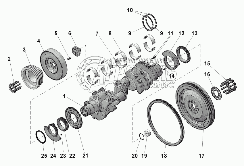 | 1 | 849.1005010 | Вал коленчатый в сборе с шестернями и противовесами | Под заказ | - | |||||