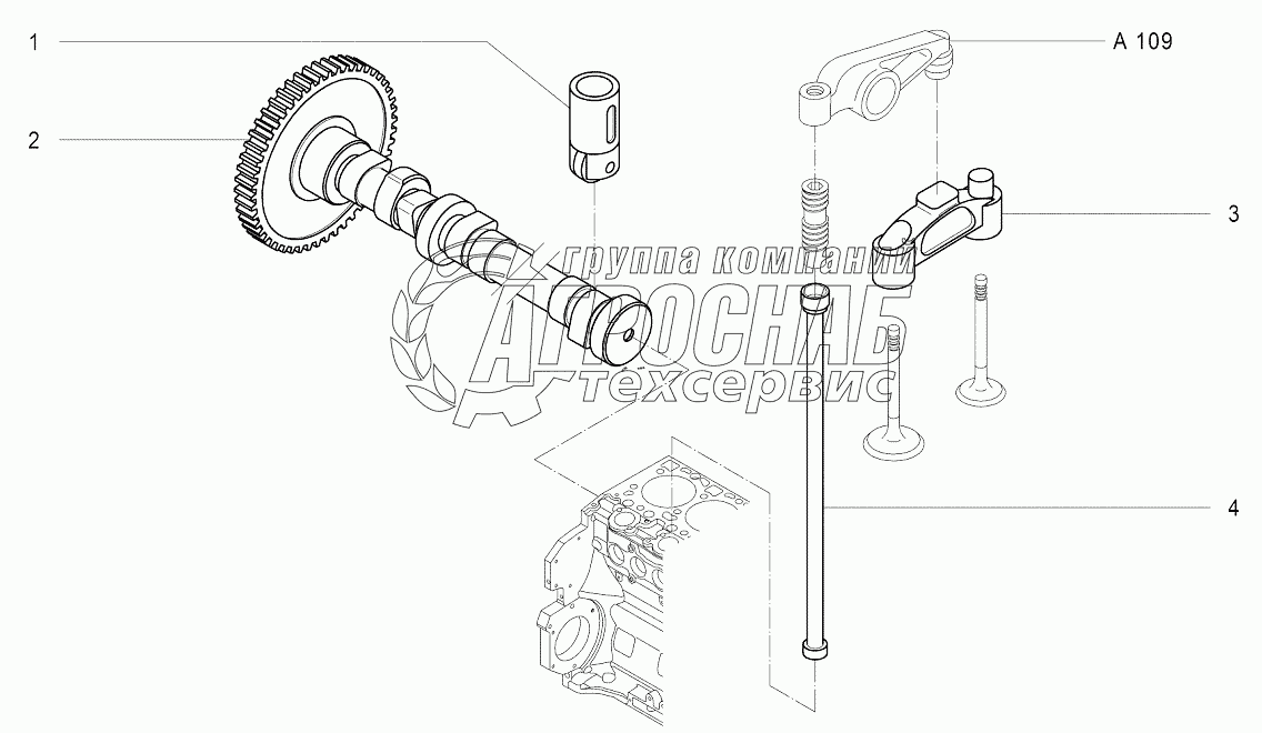 Каталог запасных частей к технике: Агротехмаш АТМ-7360. A108 Вал распределительный, привод клапанов