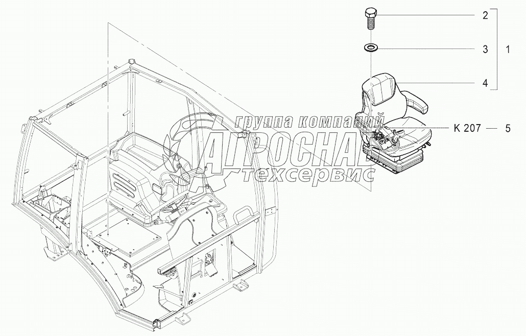 Каталог запасных частей к технике: Агротехмаш АТМ-7360. K101 Сиденье водителя в сборе