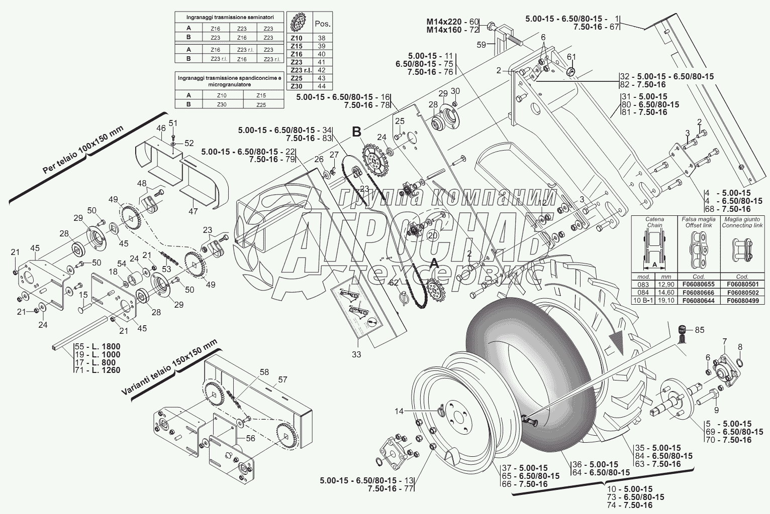 Каталог запасных частей к технике: Gaspardo Сеялка серии МТ. RUOTE DI TRASMISSIONE ANTERIORI