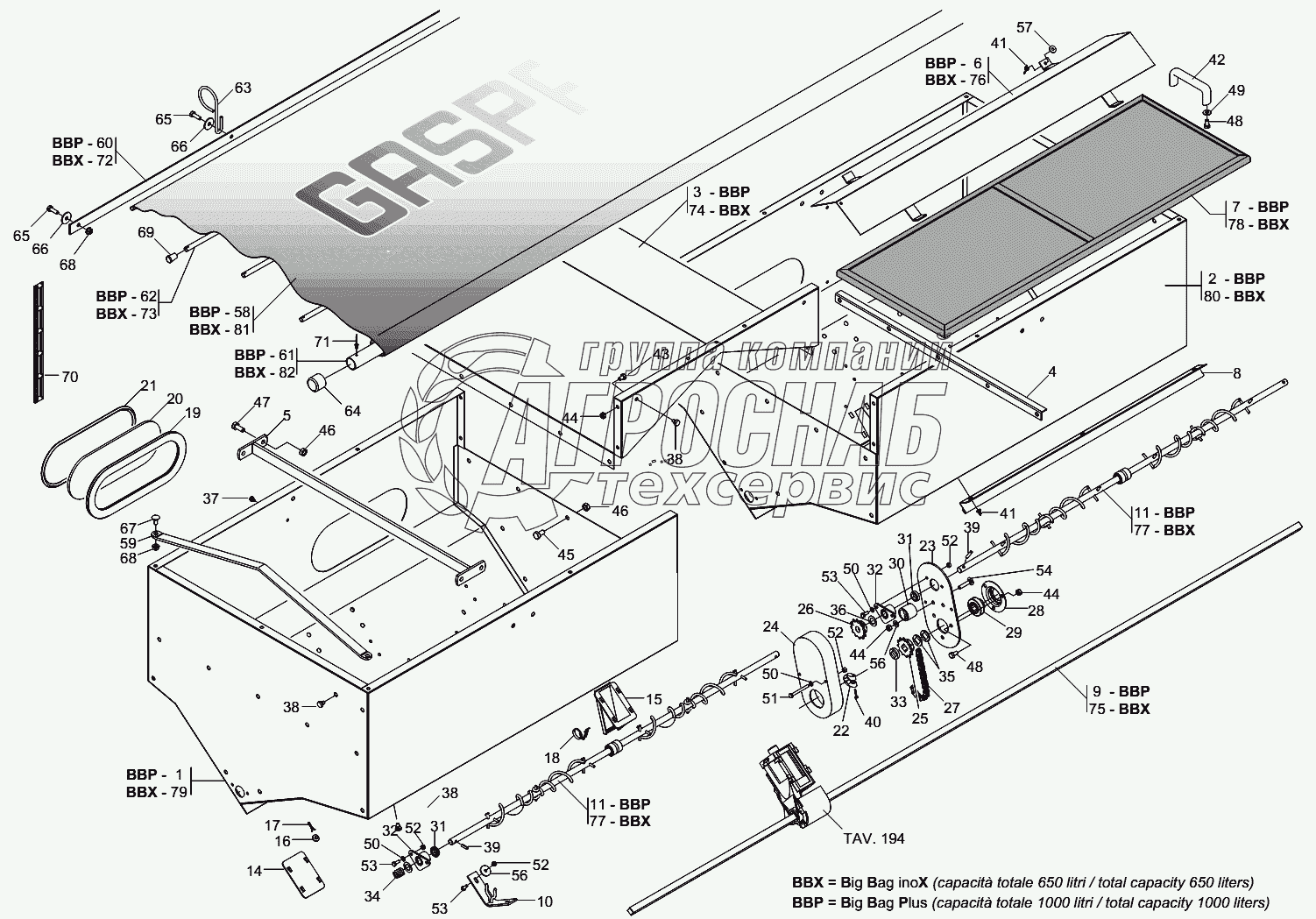 Каталог запасных частей к технике: Gaspardo Сеялка серии МТ. SERBATOIO SPANDICONCIME UNICO