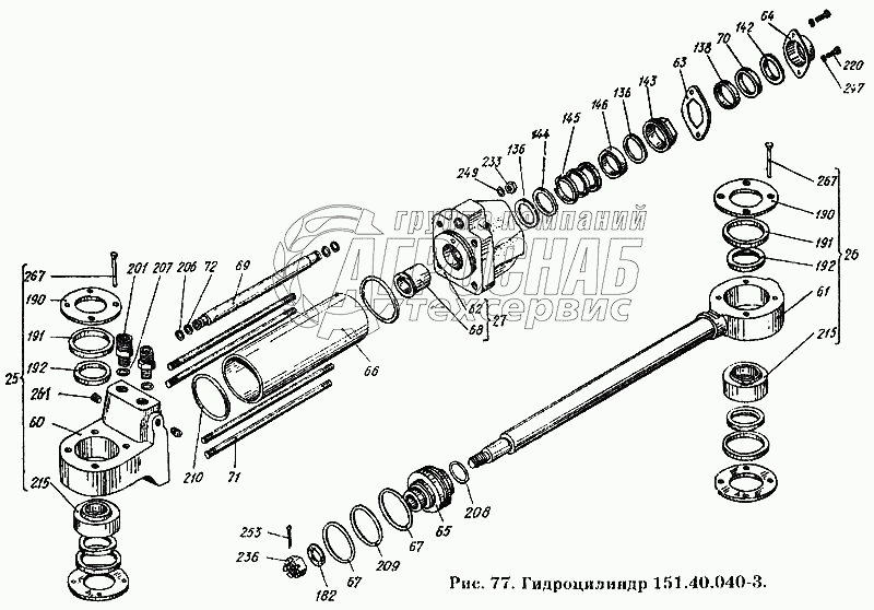 Каталог запасных частей к технике: ХТЗ Т-150К. Гидроцилиндр 151.40.040-3
