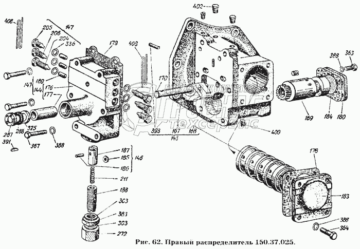 Каталог запасных частей к технике: ХТЗ Т-150К. Правый распределитель 150.37.025
