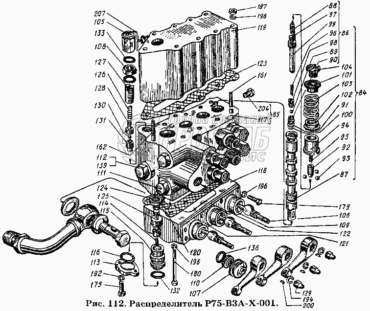 Каталог запасных частей к технике: ХТЗ Т-150К. Распределитель Р76-В3А-Х 001