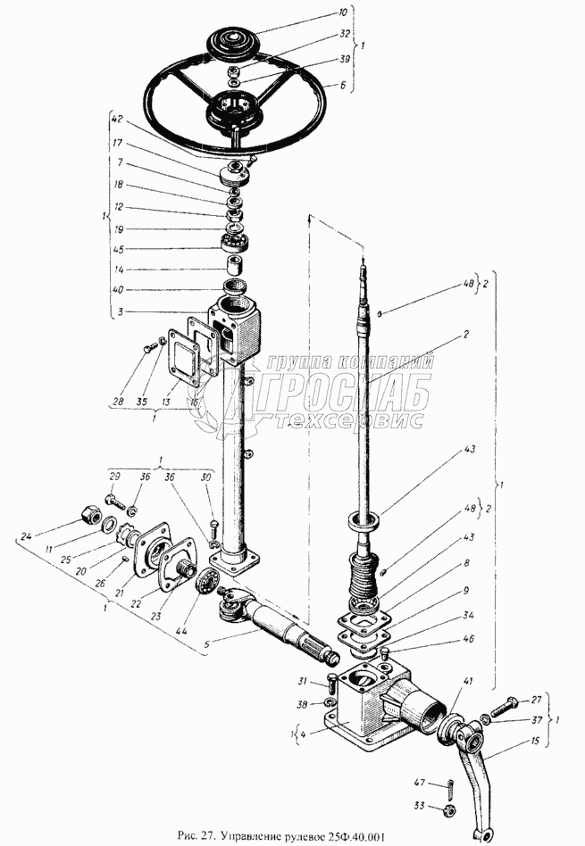 Каталог запасных частей к технике: ХТЗ Т-25Ф. Управление рулевое 25Ф.40.001