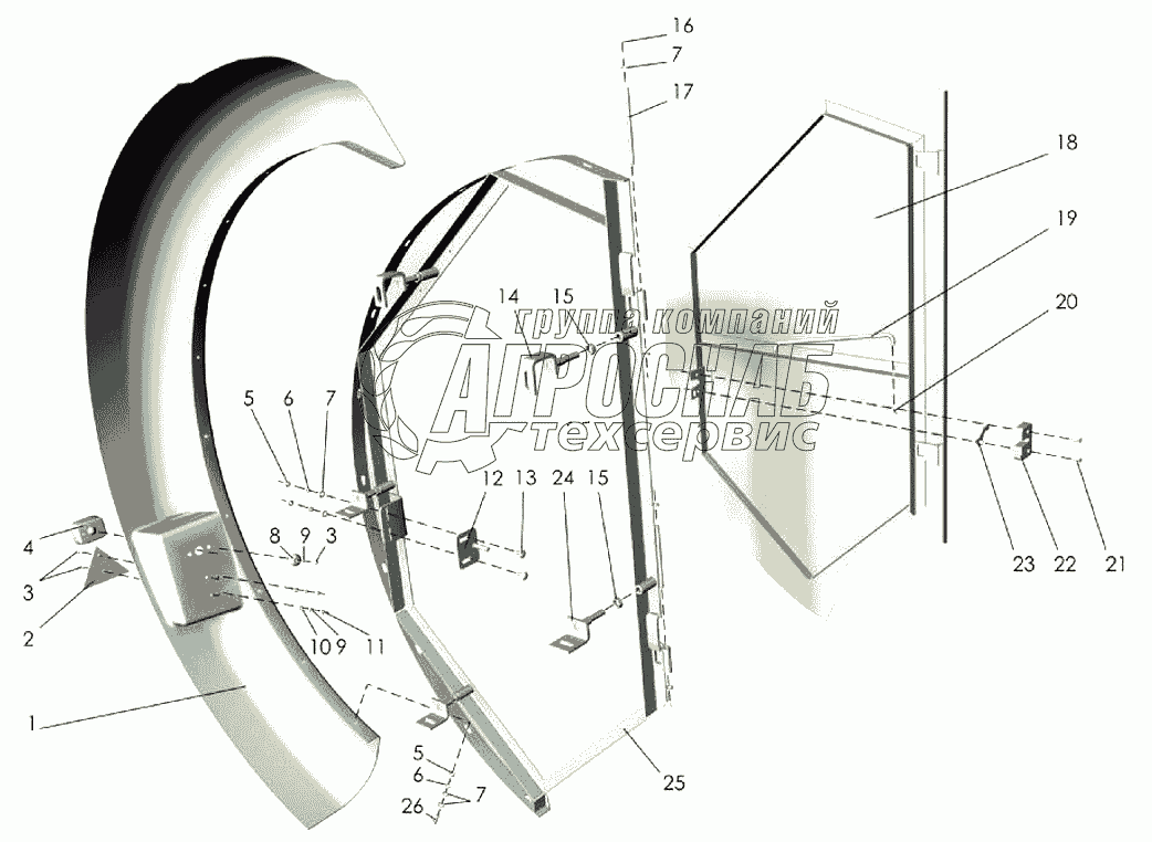 Каталог запасных частей к технике: Клевер ППР-120 "Pelikan". Ограждение заднее левое