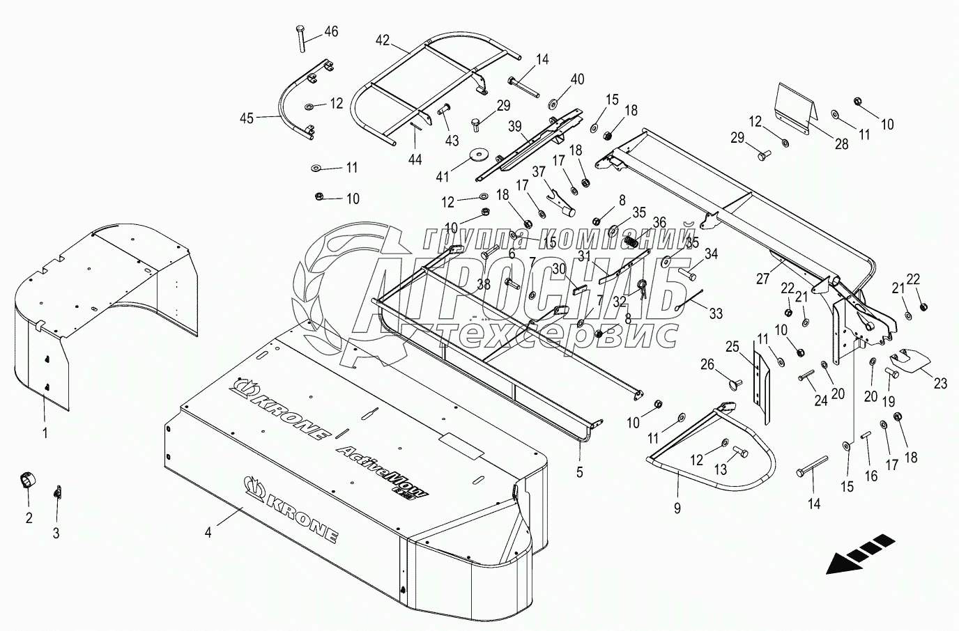 Каталог запасных частей к технике: KRONE ActiveMow R280. Schutz Fold-away
