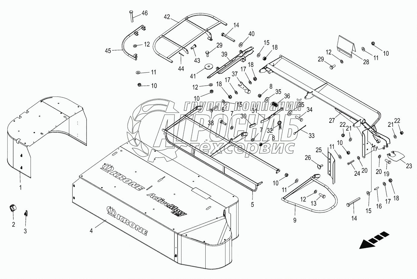 Каталог запасных частей к технике: KRONE ActiveMow R280. Schutz Fold-away