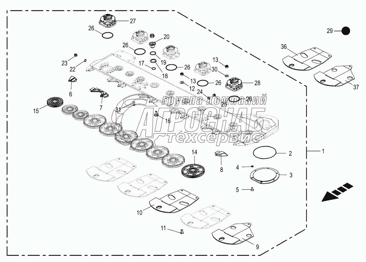 Каталог запасных частей к технике: KRONE ActiveMow R320. Cutter bar - SafeCut INSIDE 951000 - 968000