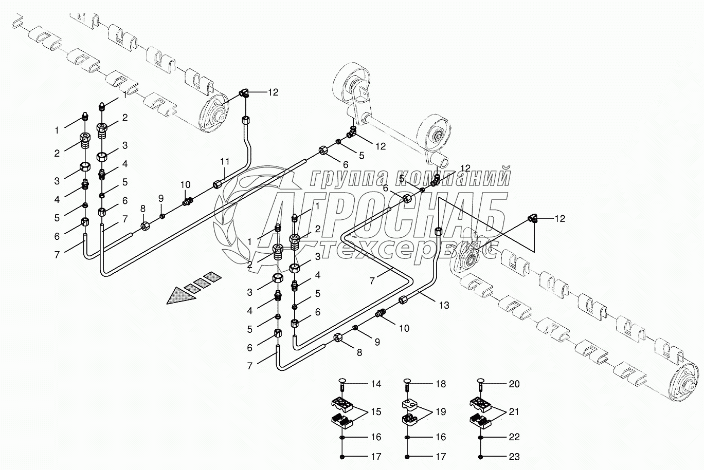 Каталог запасных частей к технике: KRONE BIG-M-400. Tine conditioner Lubricating line-CV