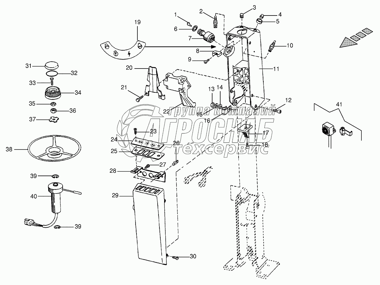 Каталог запасных частей к технике: KRONE BIG-M-I. Steering column - upper