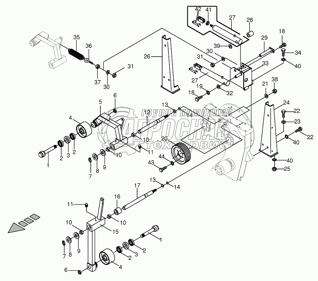 Каталог запасных частей к технике: KRONE BIG-M-II. Tensioning device on central gearbox