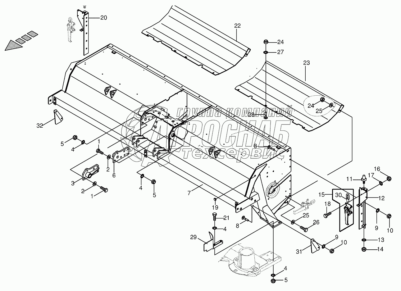 Каталог запасных частей к технике: KRONE BIG-M-II. Tine conditioner housing -lateral