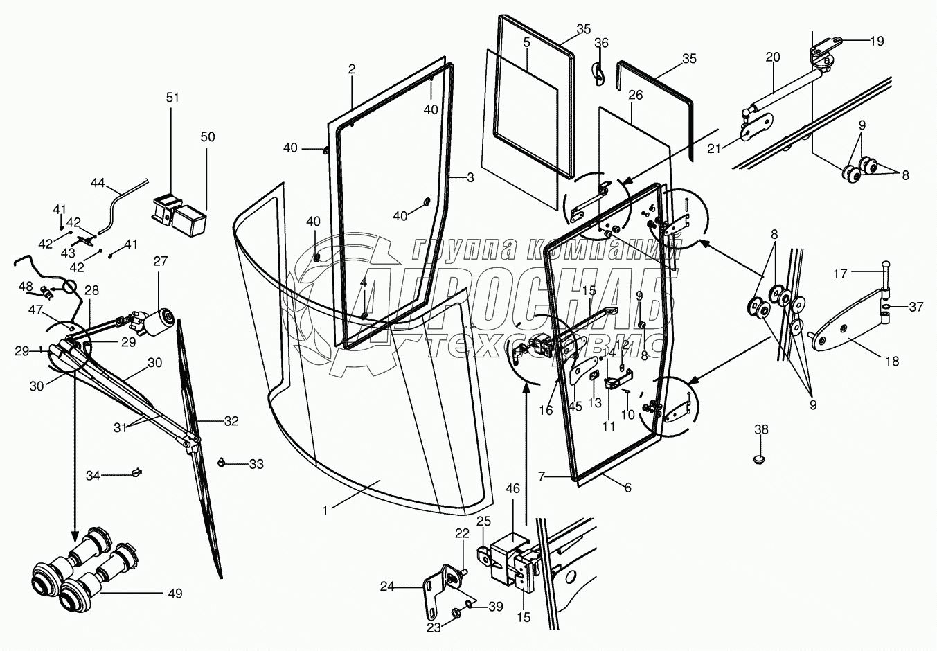 Каталог запасных частей к технике: KRONE BIG-M-II. Cab - glazing