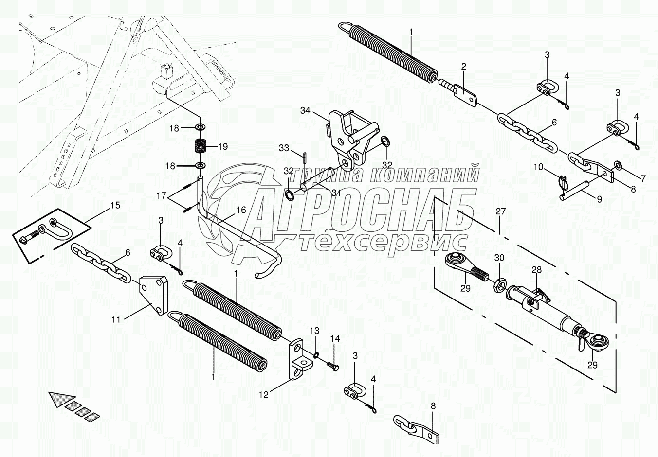 Каталог запасных частей к технике: KRONE BIG-M-II. Spring compensation - front CRI