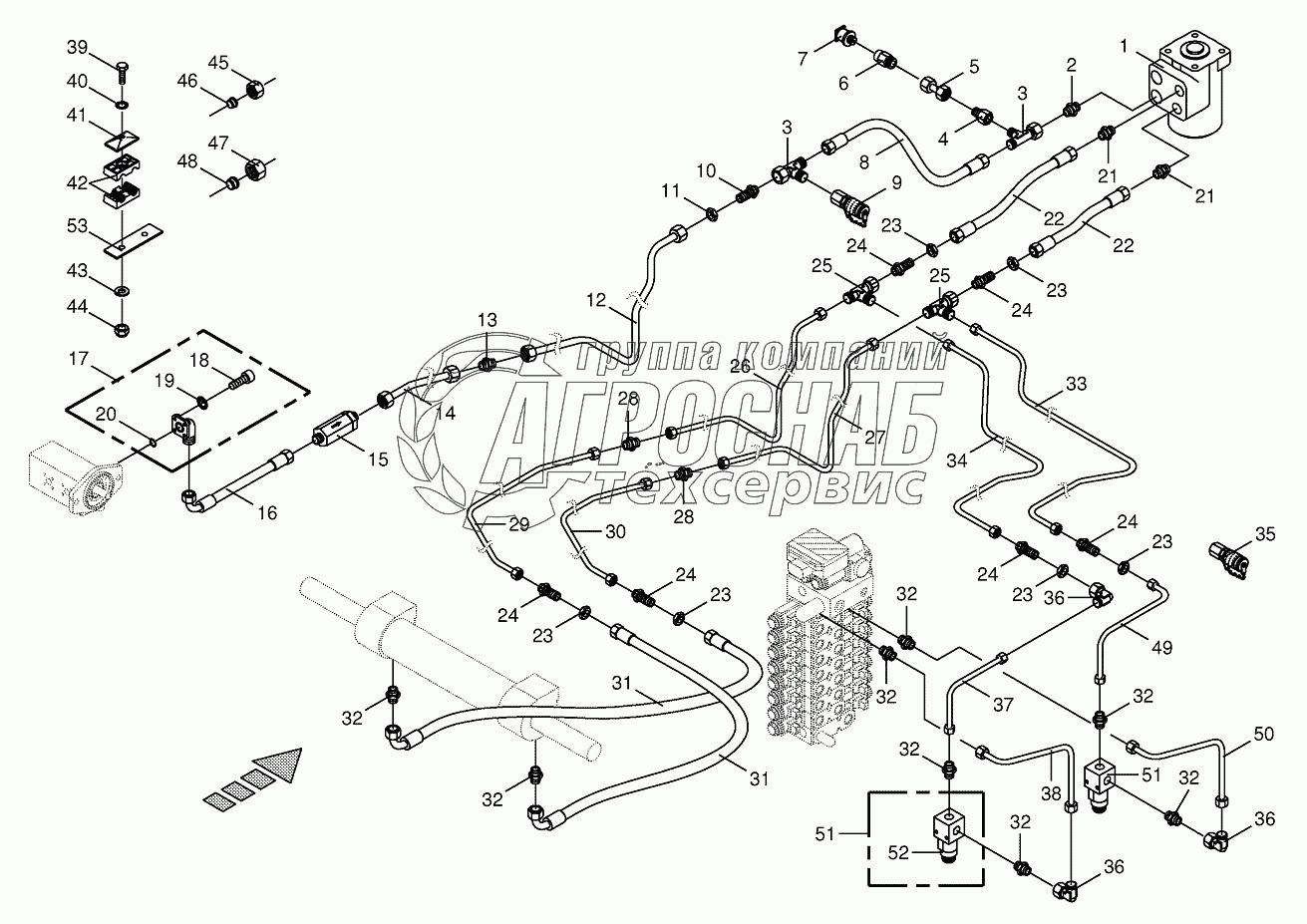 Каталог запасных частей к технике: KRONE BIG-X-1000. Hydraulic steering system