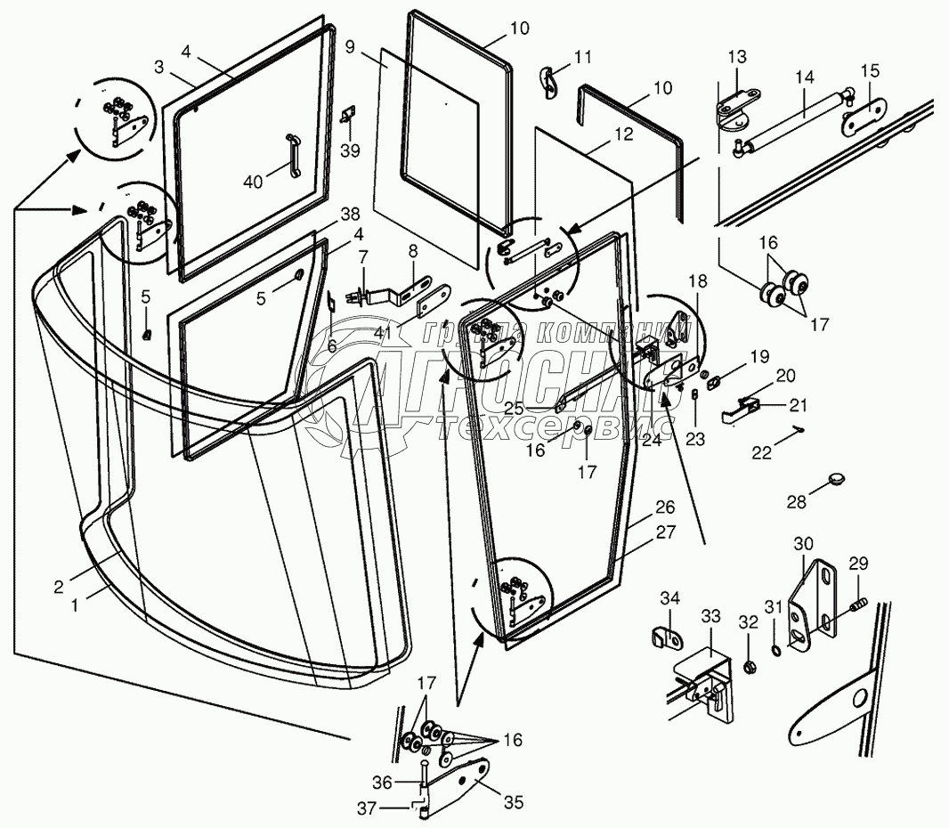 Каталог запасных частей к технике: KRONE BIG-X-500. Cab-glazing