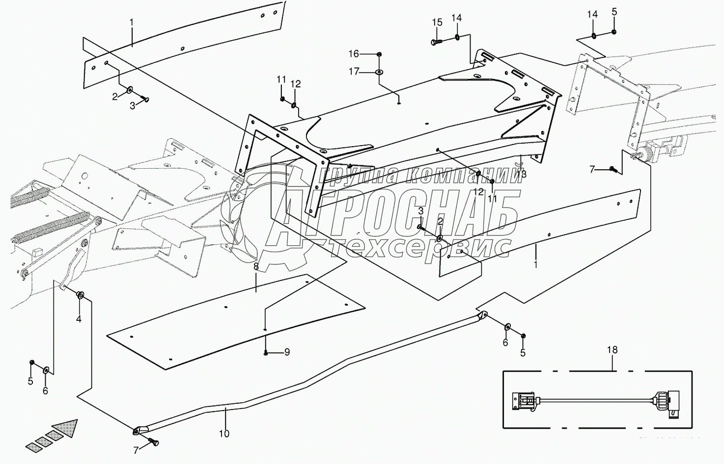 Каталог запасных частей к технике: KRONE BIG-X-500. Discharge chute extension 12-row