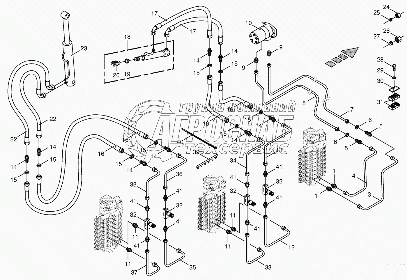 Каталог запасных частей к технике: KRONE BIG-X-500. Hydraulics cpl.-discharge chute