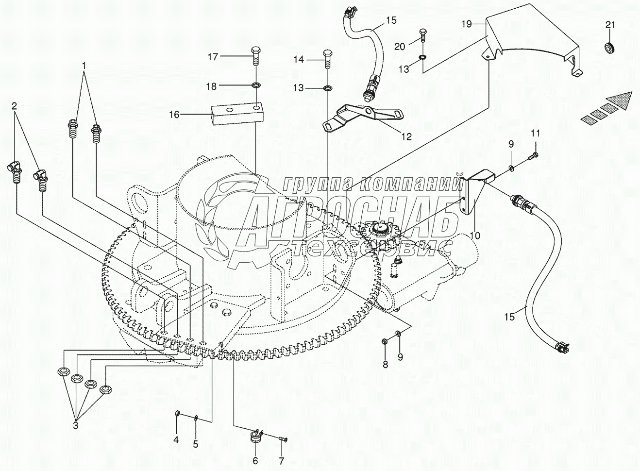 Каталог запасных частей к технике: KRONE BIG-X-500. Mounting parts discharge chute rotation