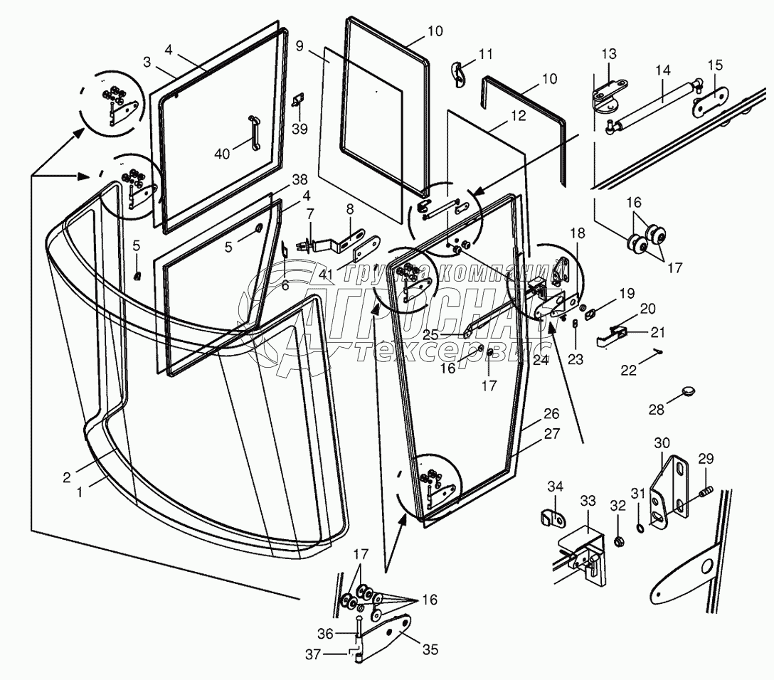Каталог запасных частей к технике: KRONE BIG-X-500. Cab-glazing