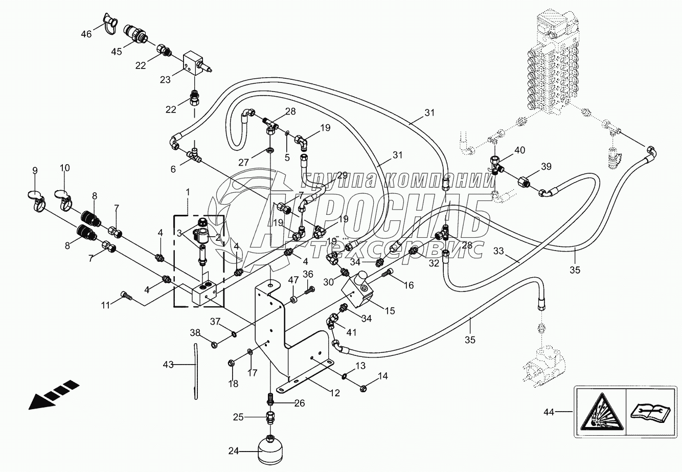 Каталог запасных частей к технике: KRONE BIG-X-600. Hydraulic panel - additional axis