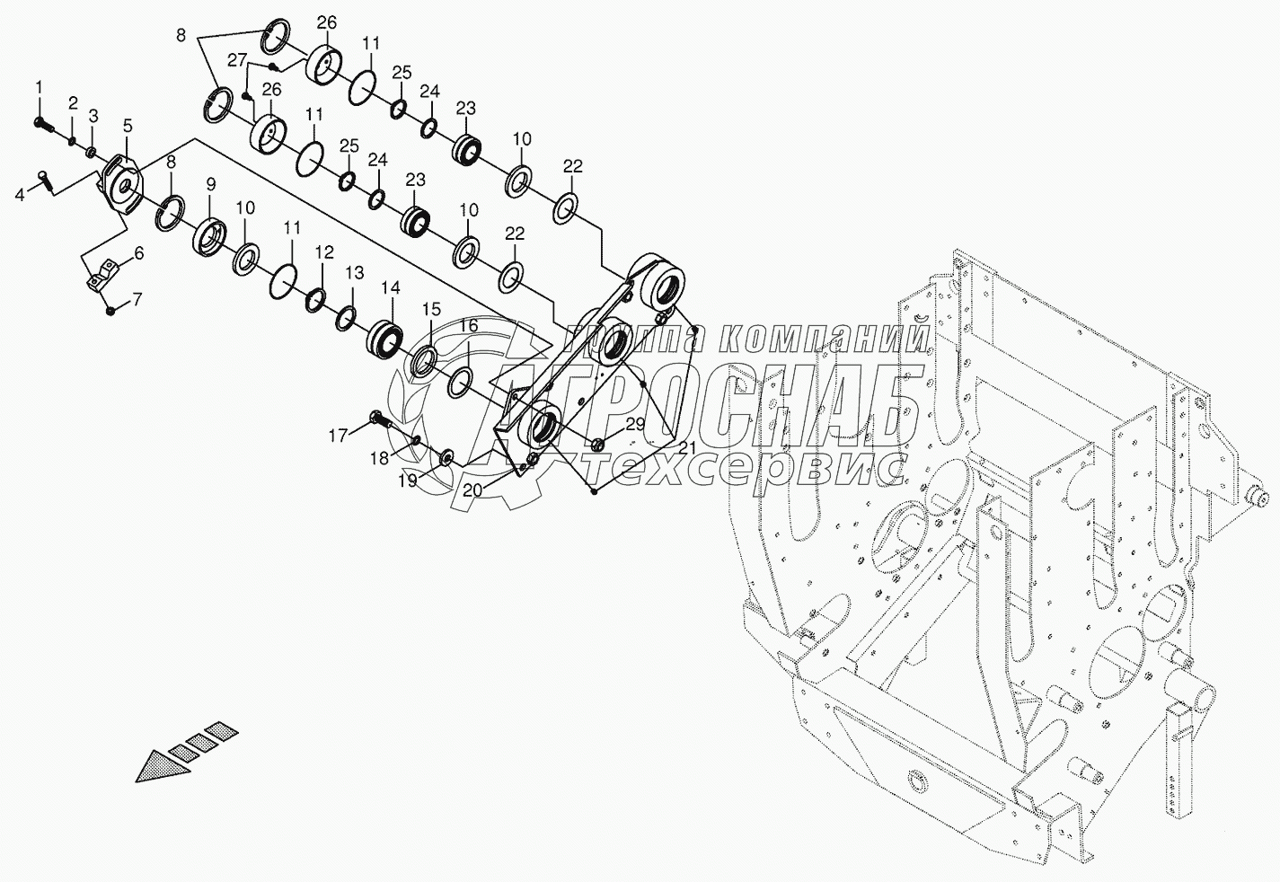 Каталог запасных частей к технике: KRONE BIG-X-650. Lower feed roller bearing
