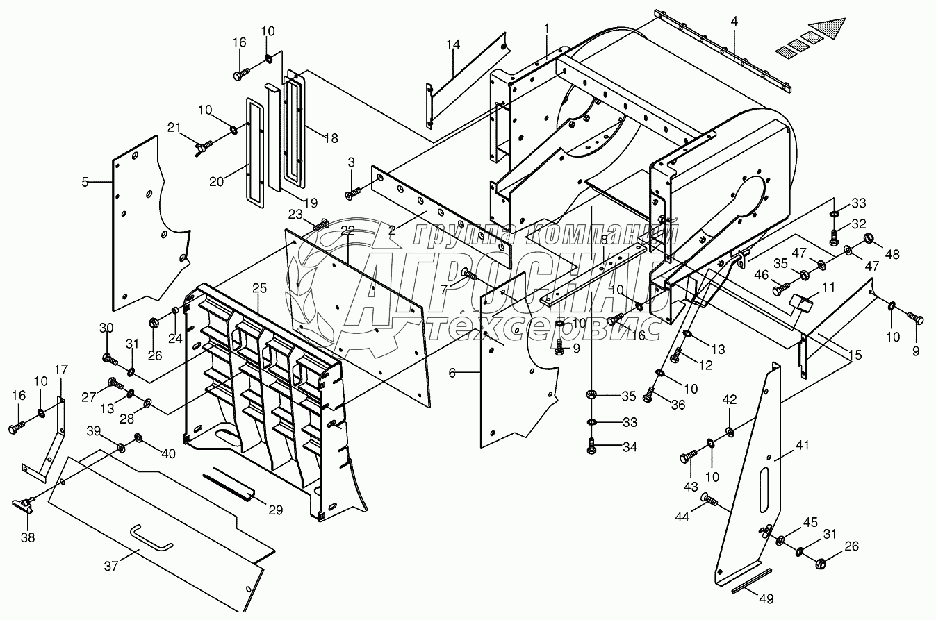 Каталог запасных частей к технике: KRONE BIG-X-650. Discharge accelerator housinge