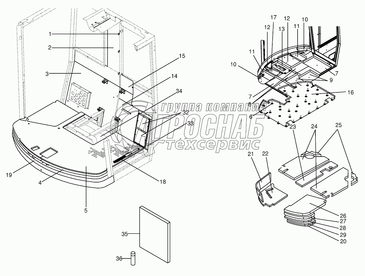 Каталог запасных частей к технике: KRONE BIG-X-650. Cab-Sound deadening