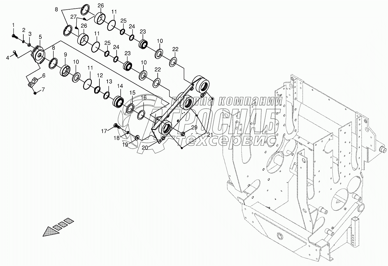 Каталог запасных частей к технике: KRONE BIG-X-650. Lower feed roller bearing