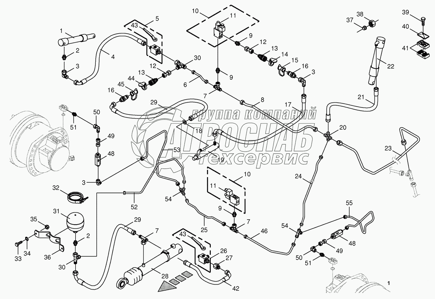 Каталог запасных частей к технике: KRONE BIG-X-650. Charge pressure lines- front