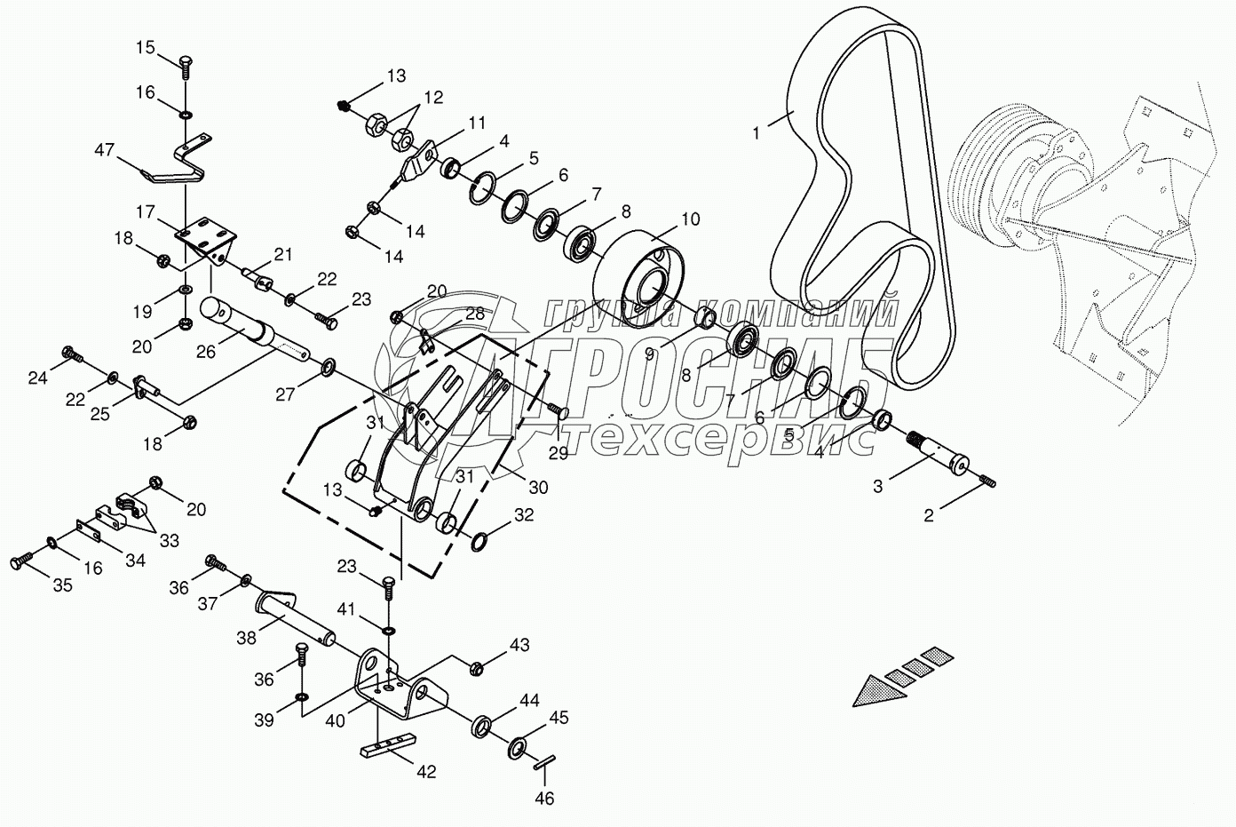 Каталог запасных частей к технике: KRONE BIG-X-650. Cracker drive/tensioning device