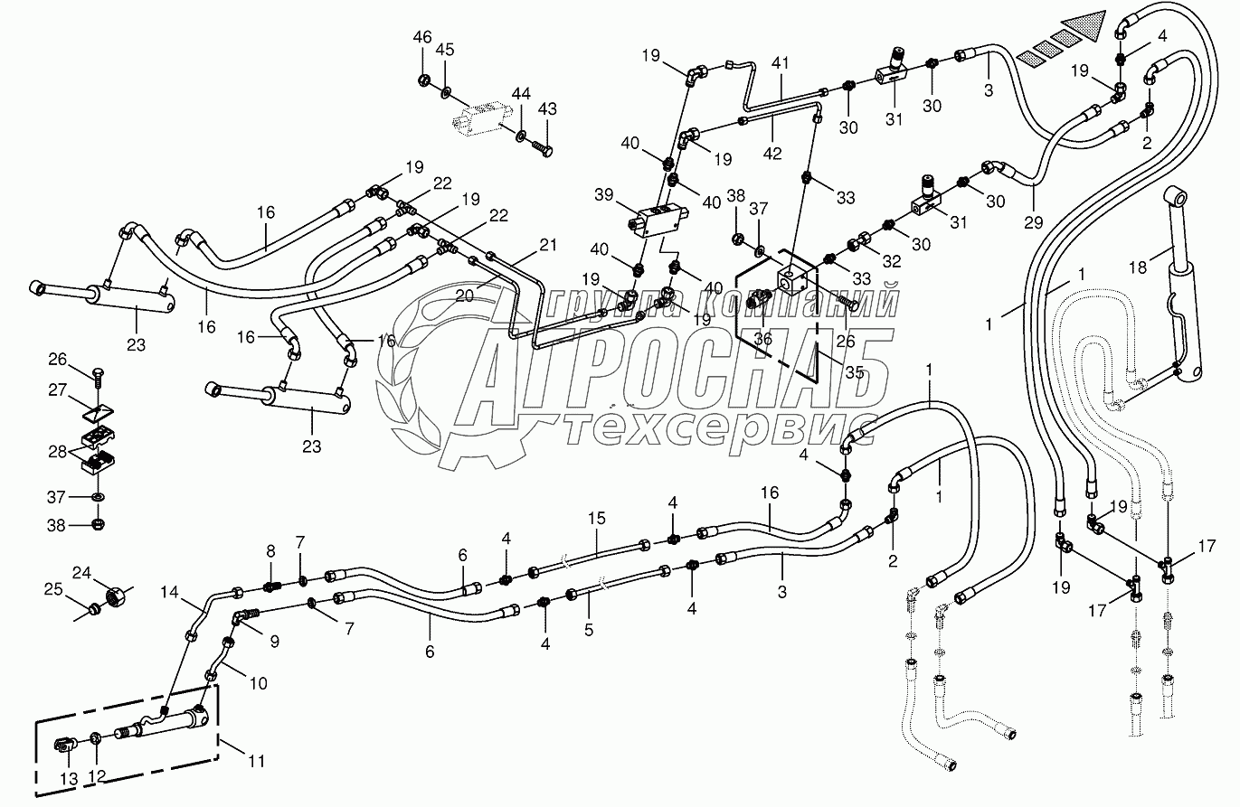 Каталог запасных частей к технике: KRONE BIG-X-650. Hydraulics - discharge chute - 14-row