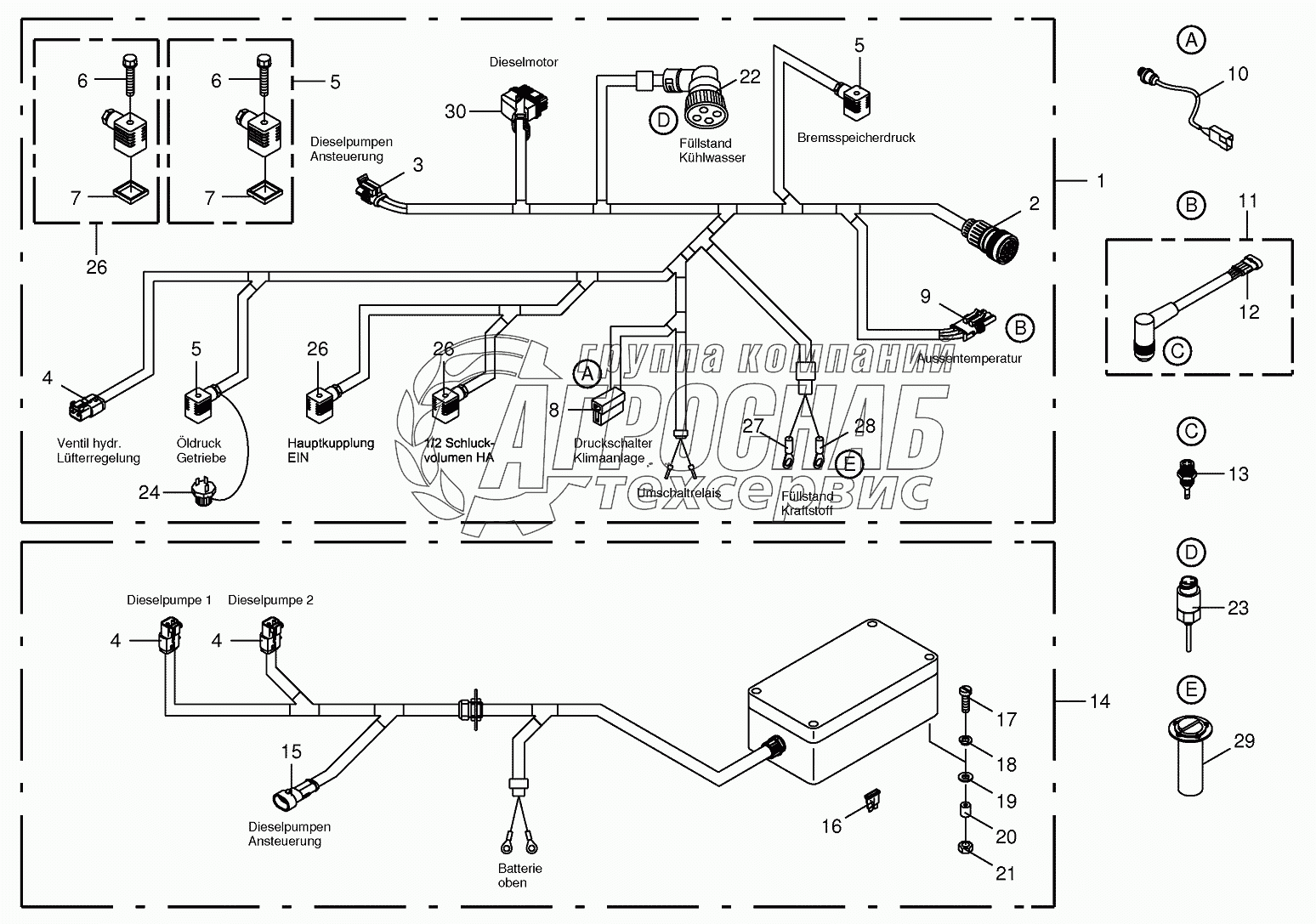 Каталог запасных частей к технике: KRONE BIG-X-700. Wiring Harness - engine/diesel pumps
