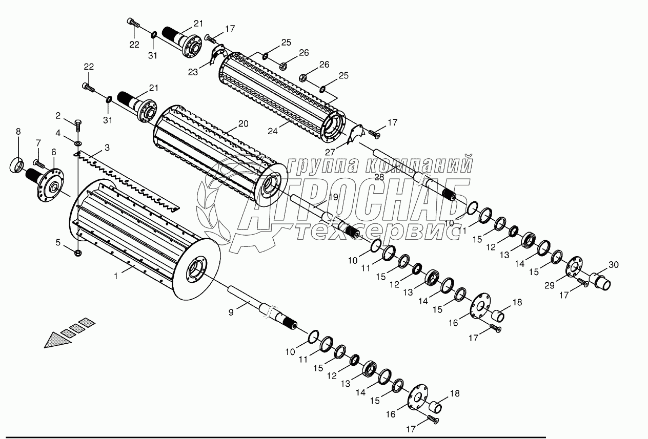 Каталог запасных частей к технике: KRONE BIG-X-700. Top feed rollers