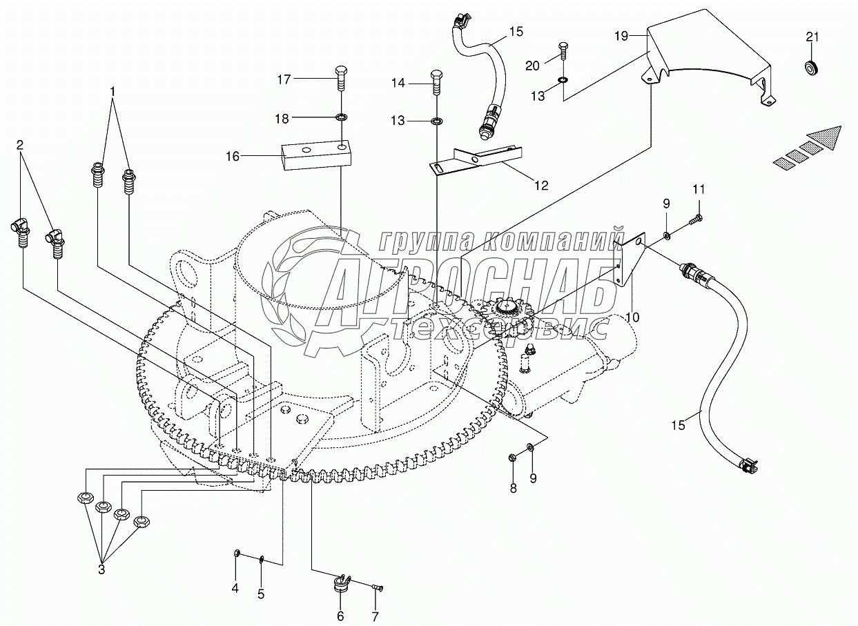 Каталог запасных частей к технике: KRONE BIG-X-800. Mounting parts discharge chute rotation