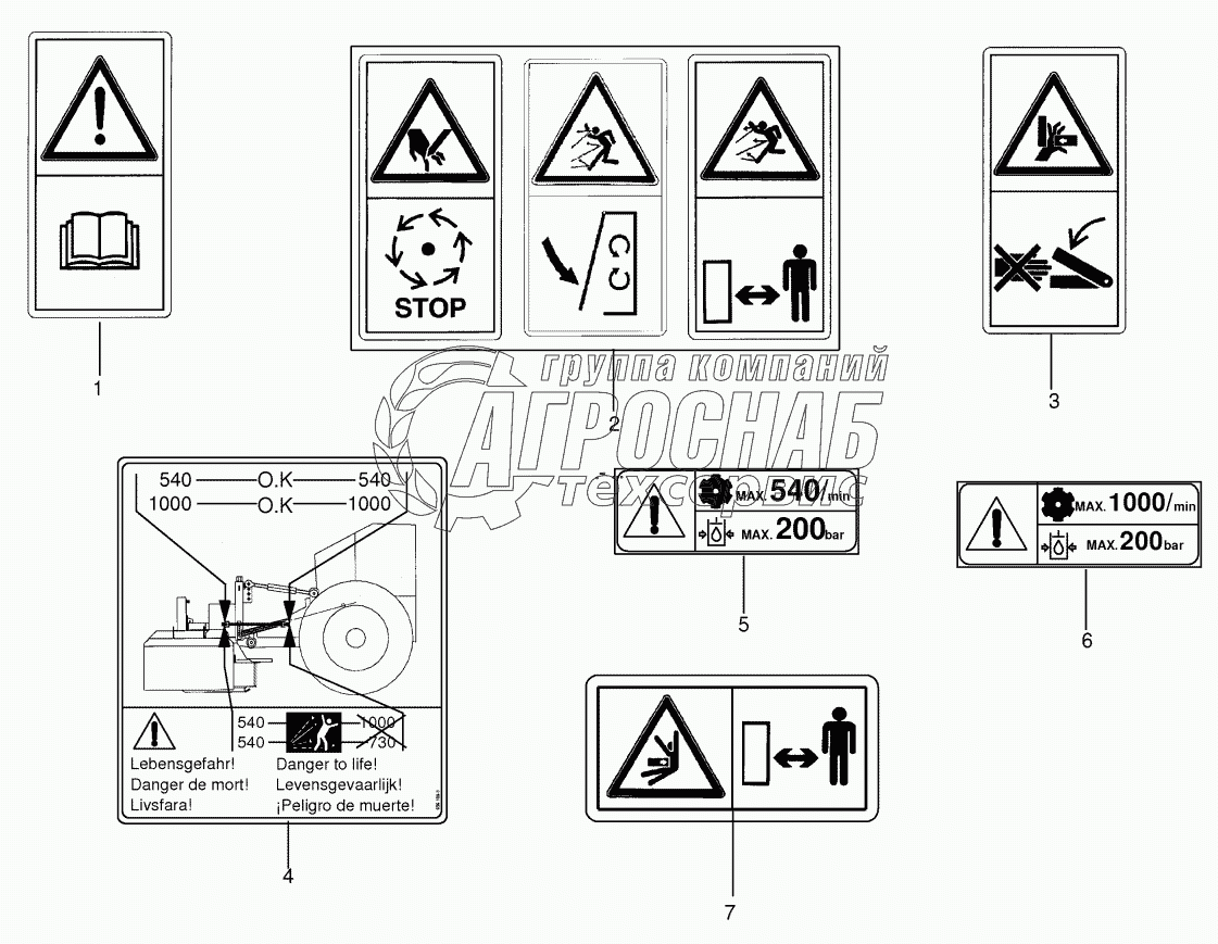 Каталог запасных частей к технике: KRONE EasyCut F360M. Warning signs