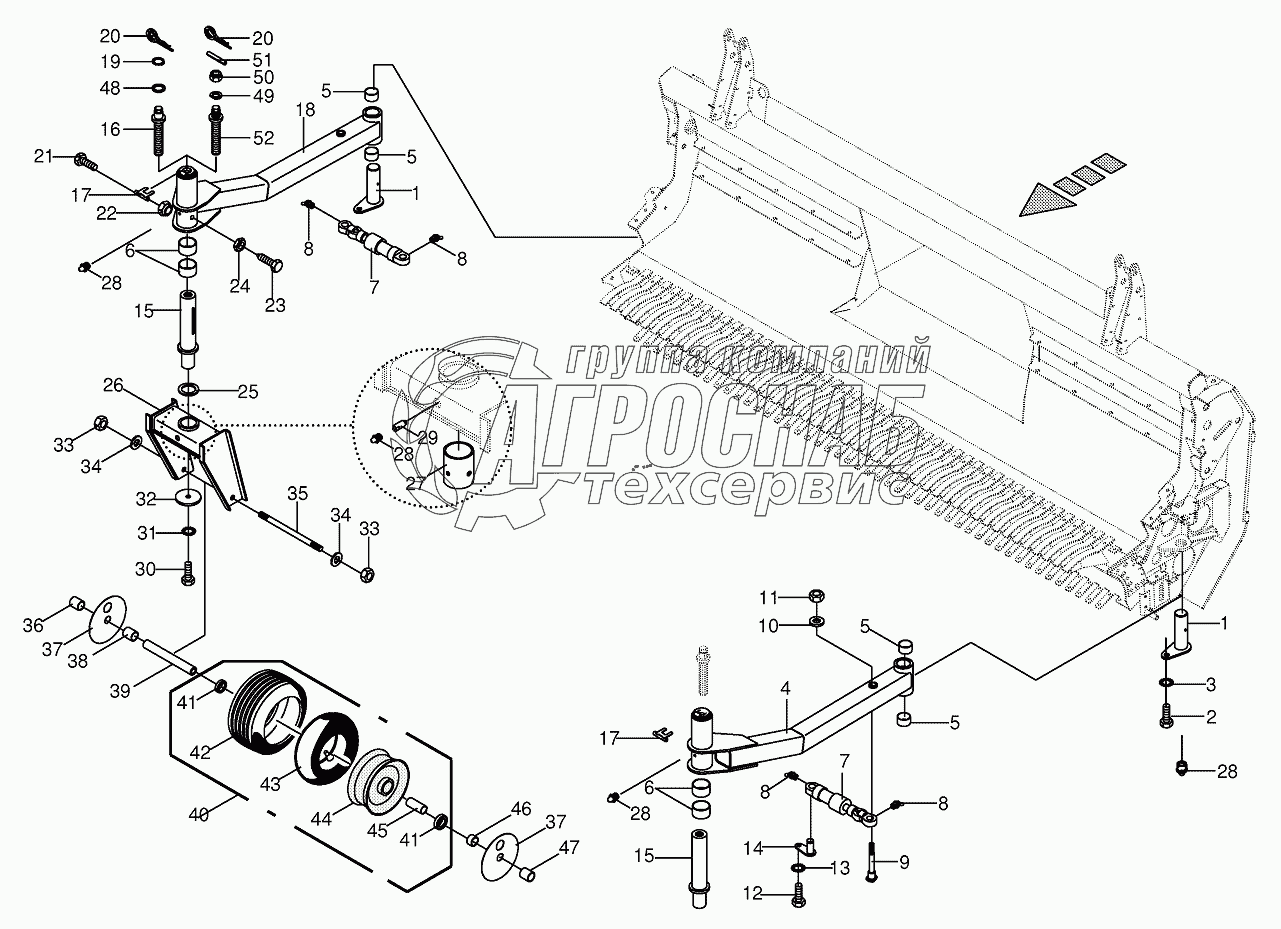 Каталог запасных частей к технике: KRONE EasyFlow 3801. Side view of supporting wheel