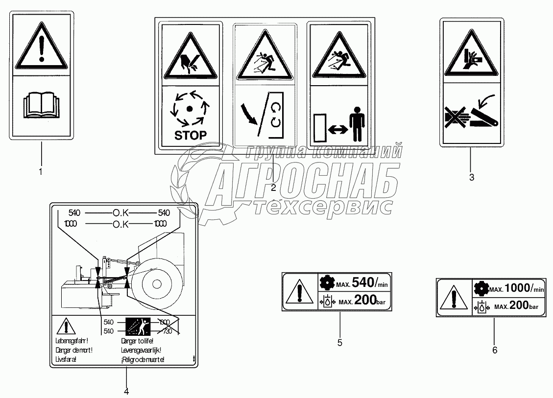 Каталог запасных частей к технике: KRONE EC 28M. Warning signs