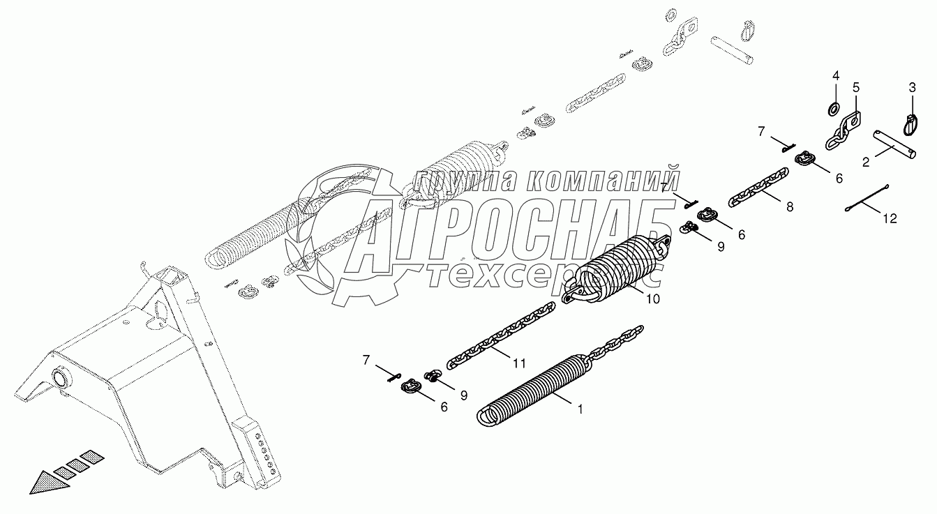 Каталог запасных частей к технике: KRONE EC F280/320/360. Spring compensation 864001 -