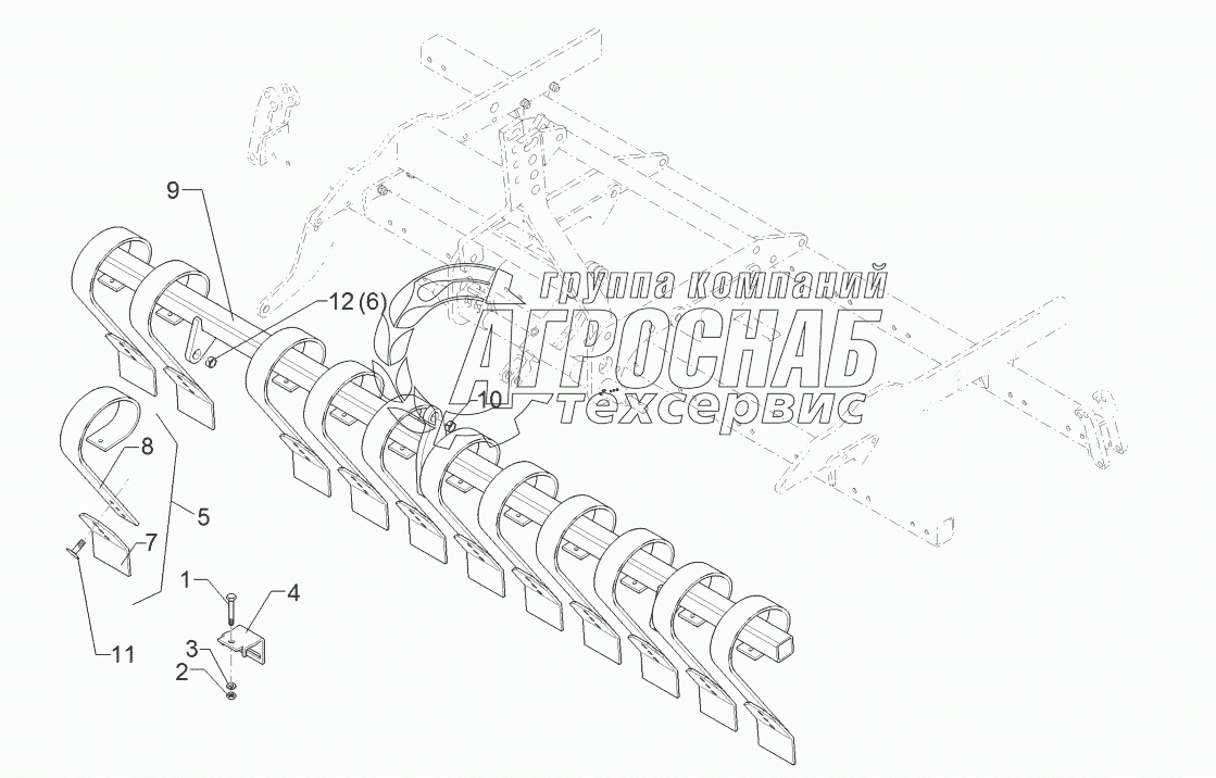 Каталог запасных частей к технике: Lemken Heliodor 9/700KA. 61210006 Leveling tine section