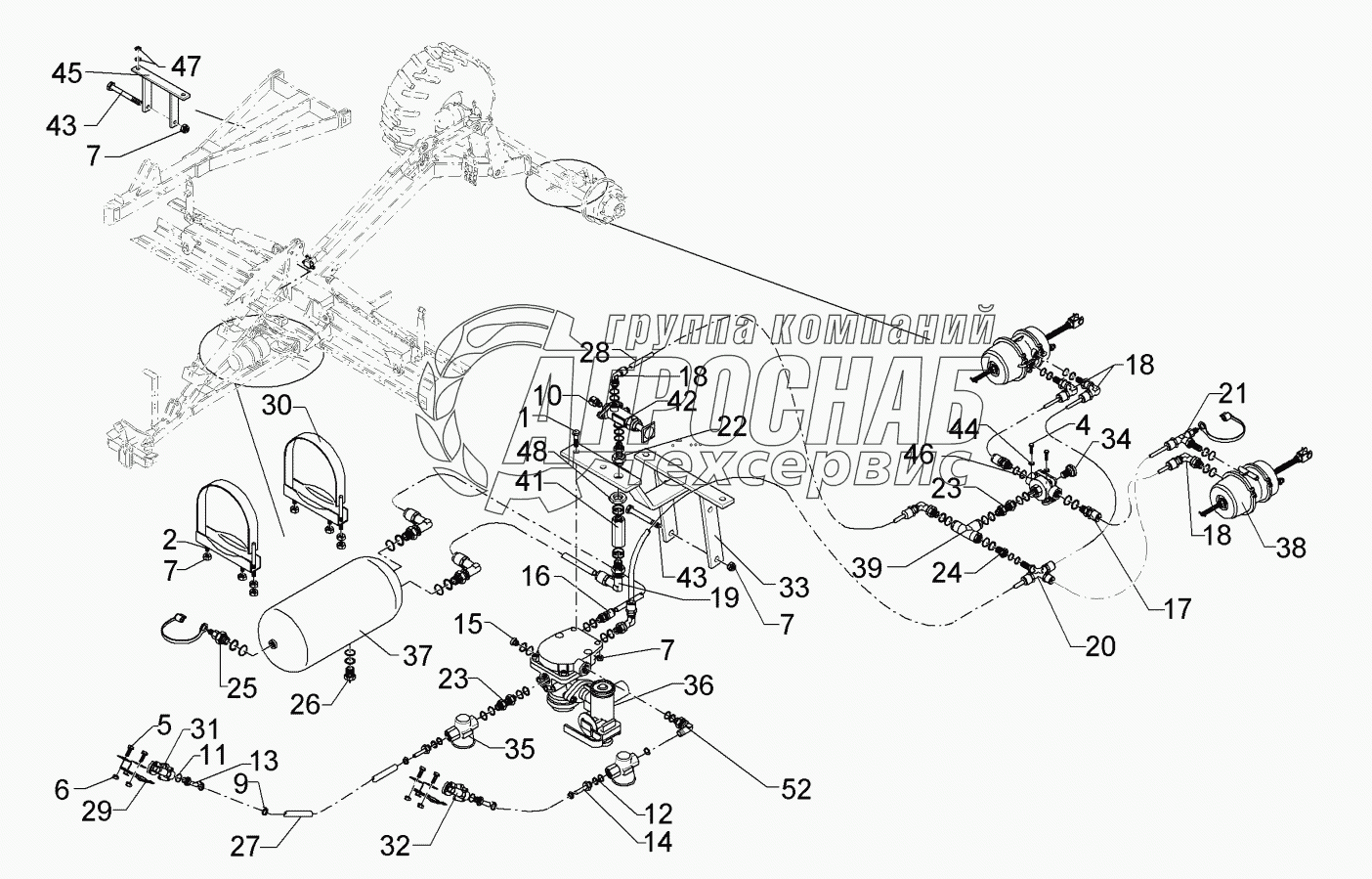Каталог запасных частей к технике: Lemken Kristall 9/500KA. 67710008 Compressed air brake