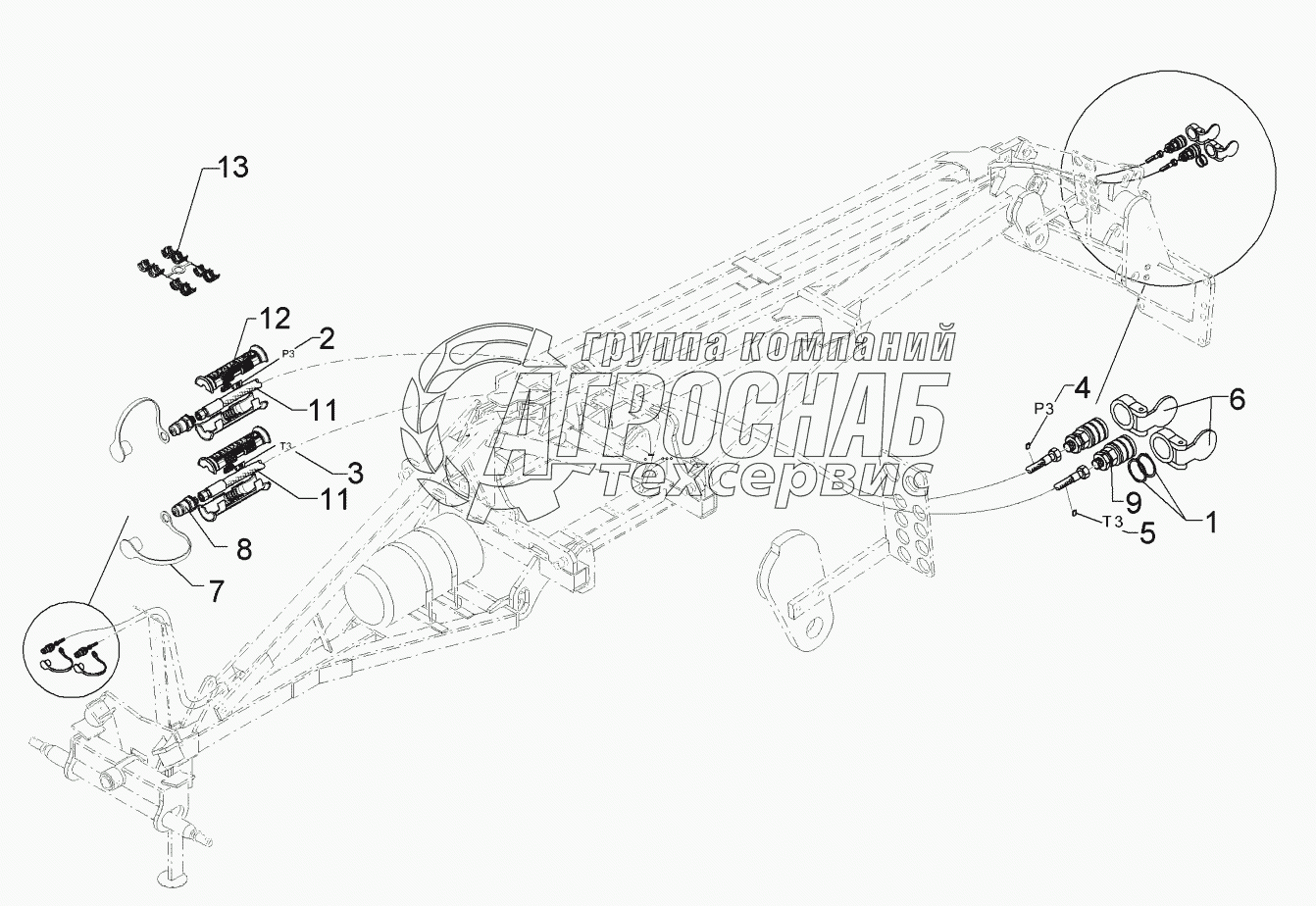 Каталог запасных частей к технике: Lemken Kristall 9/600KA. 67510083 HY-pipe assembly