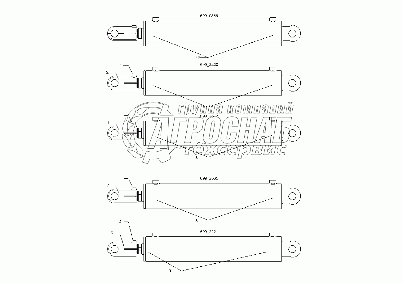Каталог запасных частей к технике: Lemken Solitair 12/5800SW. 5752355 Hydraulic ram