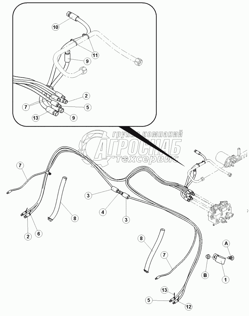 | 7 | 162274 | HOSE-HYDRAULIC, 1/2 IN ID, 850 MM LG, 100R17 | Под заказ | - | |||||