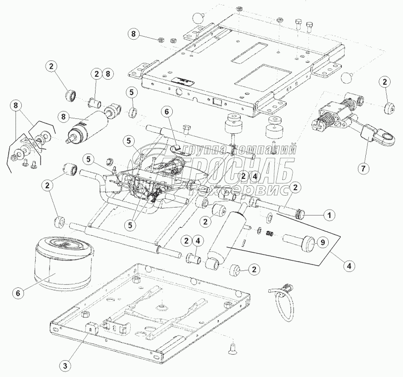 Каталог запасных частей к технике: MacDon-M105. Подвеска и внутренние компонениты сидения