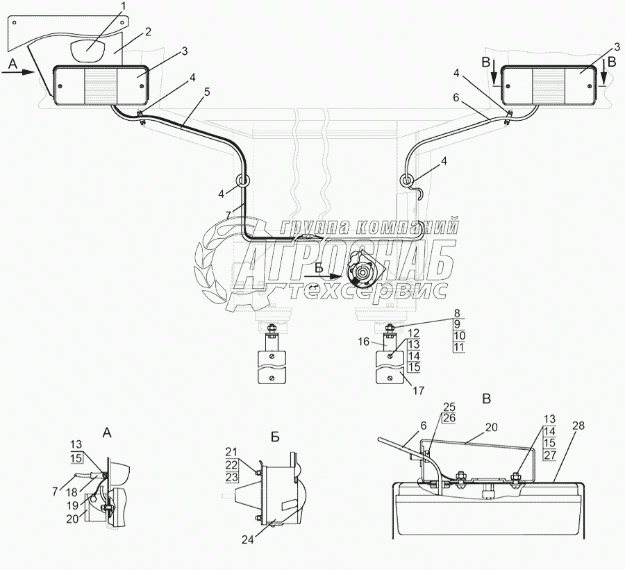 Каталог запасных частей к технике: МТЗ-1221.4. Установка фонарей задних