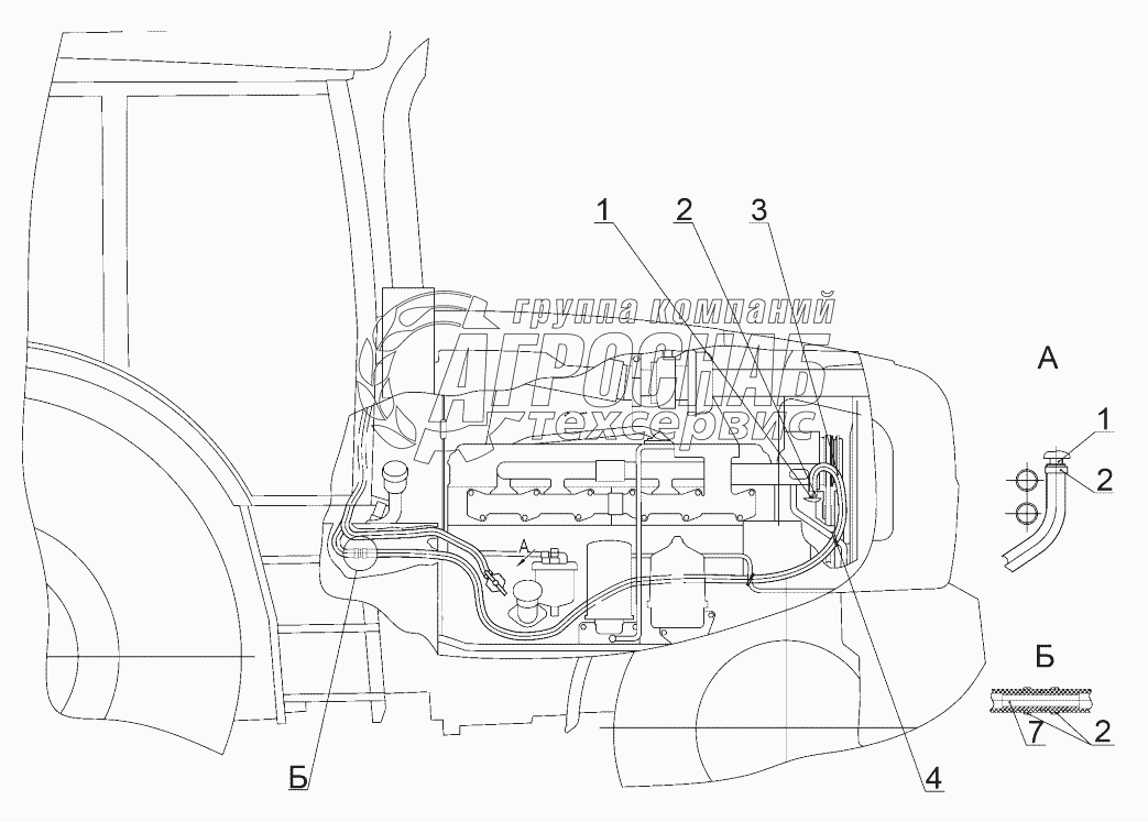 Каталог запасных частей к технике: МТЗ-1523.6. Установка шлангов отопителя